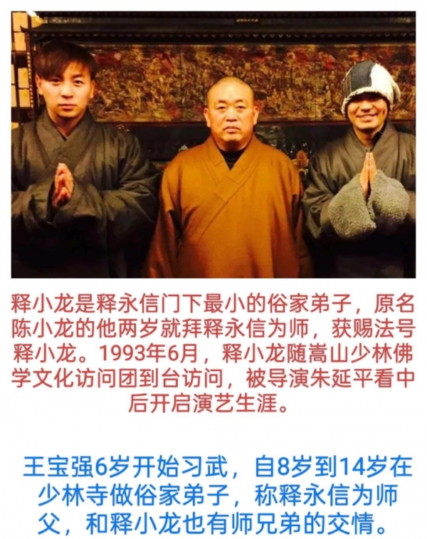 王宝强八岁时候想去少林寺学武,那会儿条件可苦了。每天四点多就得起床跑步,练功挨打是常事。后来他拍电影红了,但一直说没少林寺就没有今天的自己。2016年他离婚被前妻马蓉背叛,那时候释永信站出来支持他,说有啥困难就找少林寺,这话放现在听着怪讽刺的。