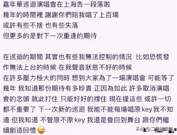 但让人没想到的是,在开完演唱会的第2天,他就宣布了"告别",他满怀真挚地写道: