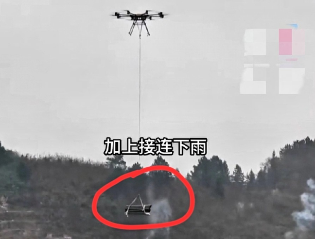 只见运棺这天,这架工业无人机带着棺材,穿越雾区与树林,直上云端,全程平稳,场面十分震撼。