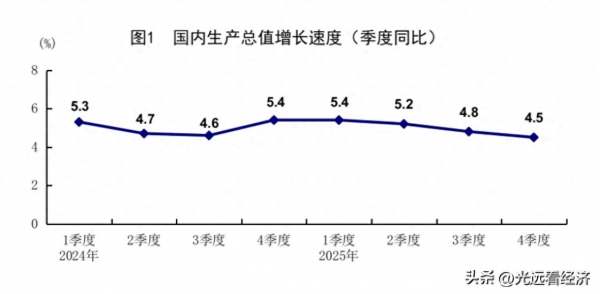 不出意外,2025年的经济增长5%,其中一季度增长5.4%,二季度增长5.2%,三季度增长4.8%,四季度增长4.5%。