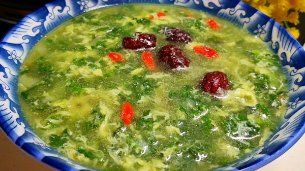 【荠菜汤】荠菜洗净切小段,小葱切葱花,把枸杞和几个大枣用清水浸泡备用;然后取两个鸡蛋磕入碗中,顺着一个方向把它打散备用;起锅加油,油温五成热放入葱花,炒出香味倒入荠菜,翻炒片刻后倒入适量的清水,开大火烧开,开始调味,加入一勺盐、一勺糖和适量的胡椒粉,搅拌均匀后再放入大枣和枸杞子,再次烧开后倒入适量的水淀粉勾芡,然后改成小火,淋入蛋液,待蛋液凝固后关火出锅。