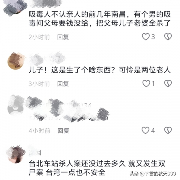 还有人表示:惯子如杀子,夫妻俩人在儿子小的时候过分溺爱他,导致他走上了歪道染上了毒品,还被儿子残忍的杀害,这两位老人太可怜了!