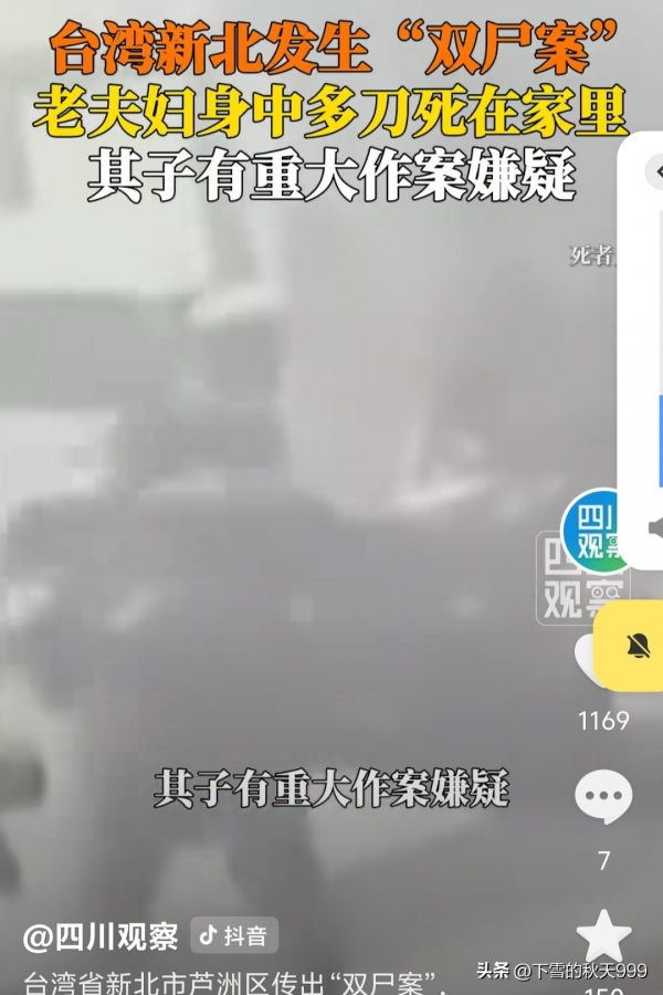 1月18日,台湾新北市芦洲区突发"双尸案",一对七旬夫妻被亲属发现双双惨死家中,而他们的儿子却在2位老人死亡后突然离家出走不知所踪,案件的残忍程度令人发指!