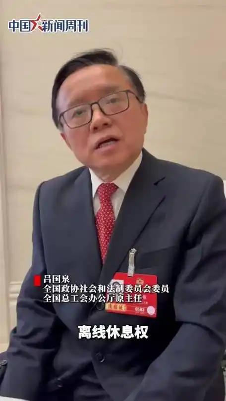 更让人惊喜的是,还有政协委员关注到了"隐形加班"的问题。全国政协委员、全国总工会办公厅原主任吕国泉提出了"离线休息权"的概念,他说:"'离线休息权'指劳动者在法定或约定的工作时间之外,有权拒绝运用数字工具等方式从事工作的权利。"