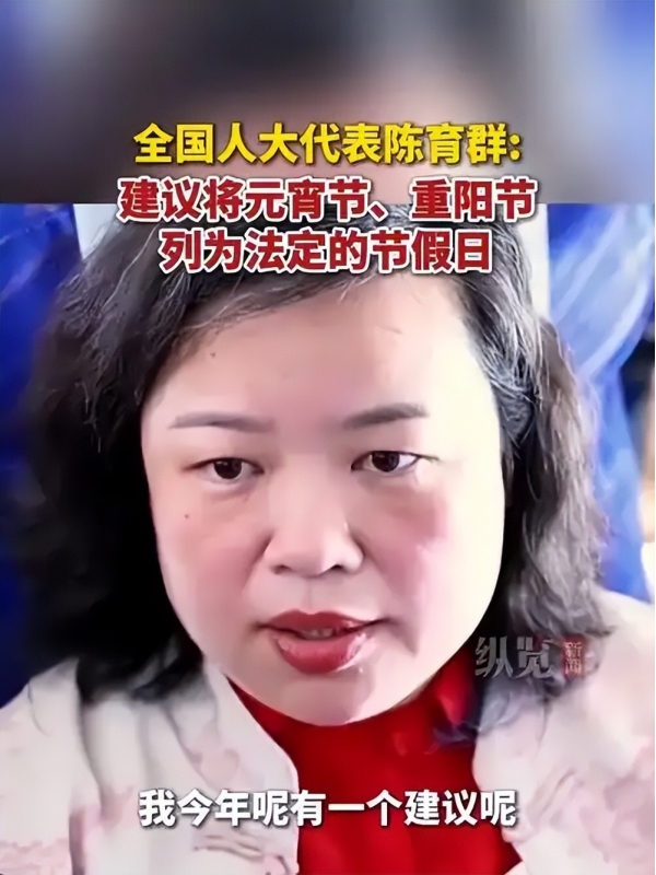 除了调休的问题,还有代表把目光投向了传统节日。全国人大代表、广东省揭阳普宁市潮菜厨师职业培训学校校长陈育群就建议,把元宵节、重阳节列为法定节假日。