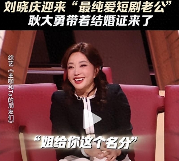 1月31号那期《主咖和Ta的朋友们》,耿大勇举着一张纸笑说"我是刘晓庆老公",台下哄笑,刘晓庆也笑得前仰后合。那张"结婚证"是短剧里的道具,剧名叫《萌宝助攻50岁婚宠》,他演她丈夫。不是真证,连复印都算不上,就是张印着红章的A4纸。