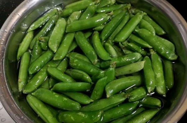 挑选一些颗粒饱满的豌豆荚,最好选择深绿色外皮的,这种口感好味道鲜甜。