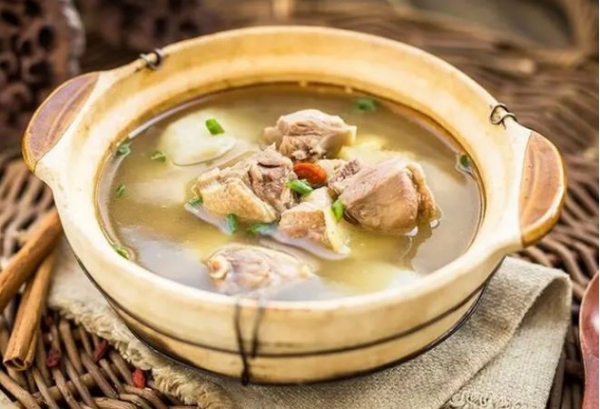 等时间到后把山药、玉米放进锅内,继续小火炖煮,半个小时后加盐、枸杞。