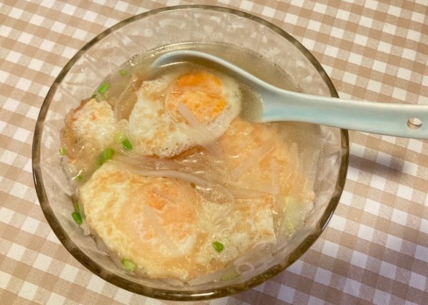 大火煮开后倒入鸡蛋,煮到白萝卜丝熟透,然后加盐调味,撒点葱花就可以出锅了。这道汤好喝不上火,还有一定的润燥作用,不妨常做。
