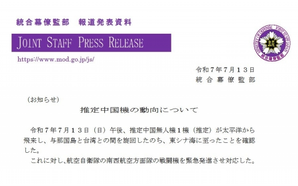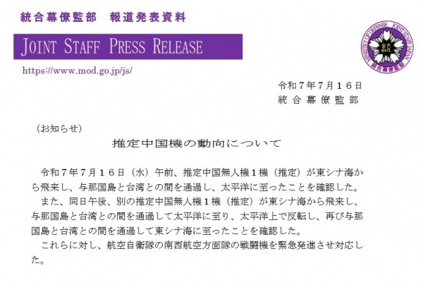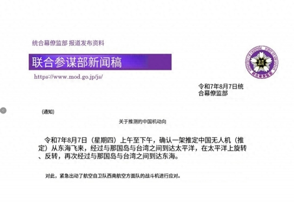 (日本防卫省统合幕僚监部8月7日发布的公告)