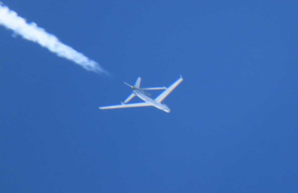 而我军使用的无人机大概率是无侦-7高空长航时无人机。该机的最大飞行高度超过2万米。日方在过去几年确实曾经有机会在西太平洋海域上空拍摄到无侦-7的照片,是使用长焦镜头绝对的仰拍,照片显示该机的飞行高度要比拍摄者高很多。日方也曾经在西太平洋上空拍摄过我军无侦-10和"双尾蝎"等无人机的照片,而且是以"平视"的角度拍摄的,说明当时这些无人机的飞行高度都在F-15J的最大升限之下。无侦-10的最大飞行高度约为1.8万米,"双尾蝎"的最大飞行高度约为1万米。