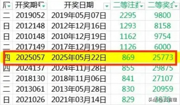 值得注意的是,二等奖开出869注,单注奖金2.5万余元,单期中奖注数排名双色球历史第5位!