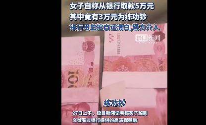 银行取钱5万有3万假币"练功钞",这是银行的失误还是个人的行为呢?据报道,山东济南章丘区的一名女子文微(化名)在8月17日从当地一银行取款5万元,但在25日准备使用这些钱时,发现其中3万元竟是假钞,这些假钞实际上是练功钞。