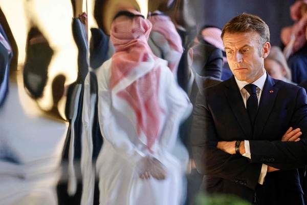 当地时间12月3日,沙特阿拉伯阿尔乌拉,法国总统马克龙访问哈吉尔考古遗址附近的马拉亚博物馆。视觉中国