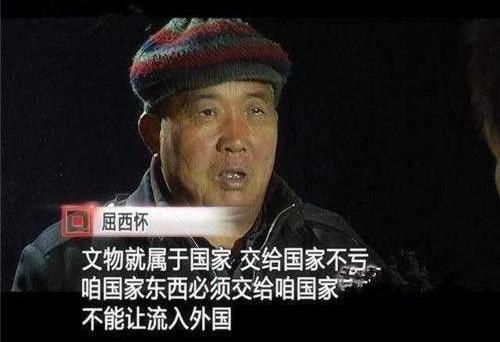 有人说屈西怀傻,但屈西怀从来都不这么认为也从不后悔,他说:"我不稀罕那钱,文物就属于国家,咱国家的东西必须交给国家,绝不能让我国的文物流失到国外,这是每个中国人都该做的事情,再让我选择一次,我还是会上交。"