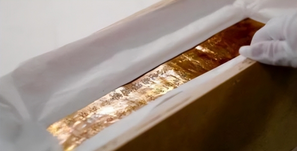 专家们拿到金块后很快进行了鉴定研究,发现这是一枚金简: