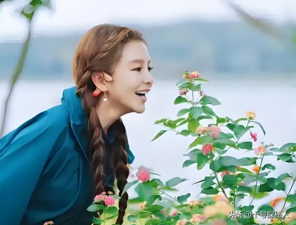 朱迅在美丽的云南采花饮茶,身旁的山川美景十分引人注目。