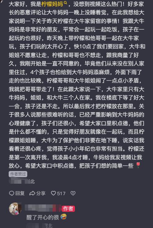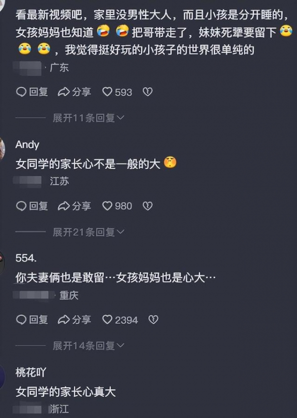 事件发酵后,女方家长现身说法,为这场风波画上了不同的注脚。原来两家母亲本就是闺蜜,当晚恰逢下雨,接送不便,且最初来了两位同学,男孩已被接走,剩下的女孩执意不肯离去,才有了这尴尬的一幕。知情者眼中这是一场基于信任的应急安排,在外人看来却成了"危险游戏"。这起事件折射出的,其实是现代家庭教育和社交边界感之间的激烈碰撞。孩童的世界或许单纯,认为不过是好朋友睡在一起,成年人眼中的"男女大防"在他们看来并无实际意义。现实社会复杂多变,家长作为监护人,职责在于为孩子构筑起一道名为"分寸"的防火墙。哪怕两家关系再亲密,在异性留宿这一环节上,更妥帖的处理方式或许是联系对方父母接回,或由家长全程陪同看护,而非让孩子们共处一室。