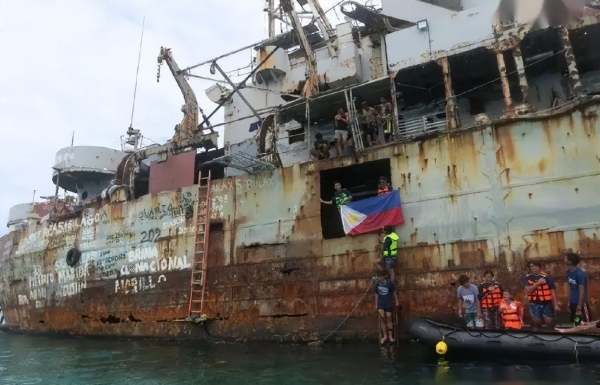现在警告我们不要登船,不要拖走。要 知道,这条船坐滩到这里可不是一天两天了,当场中国好心,结果没想到,菲律宾却有意为之,直接坐滩到我们的仁爱礁。本来两国说好了,可以运送吃的食物等,只要船体解体,就得离开。