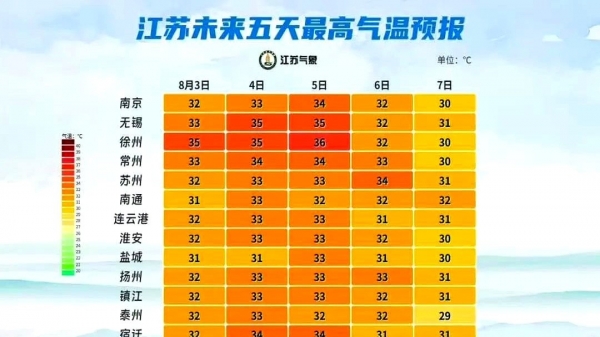 今天全省集体回到30℃+,4-5日徐州、无锡直冲35-36℃,空调外机嗡嗡作响。