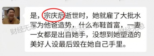 宗泽后还说宗馥莉能有今天全是因为姓宗,说杜建英对娃哈哈的付出要比宗馥莉多,不过被网友扒出,宗泽后和杜建英是长期合作关系。