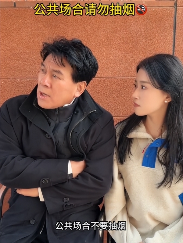 视频的开头他和女儿坐在户外,看到身边有人抽烟,他很严肃的提醒不要在公共场合抽烟。