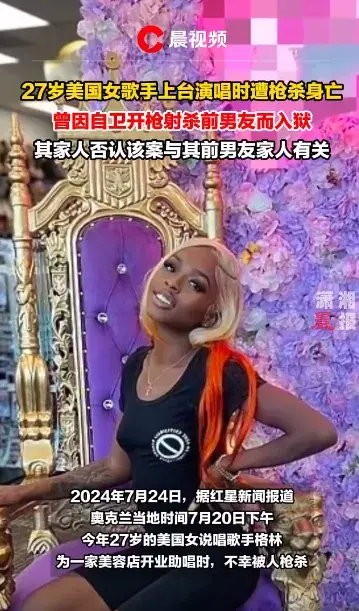 7月24号,27岁的美国女说唱歌手格林Tan DaGod,在美国奥兰克市为一家新开张不久的店铺开业助唱时,竟当众被人枪杀!