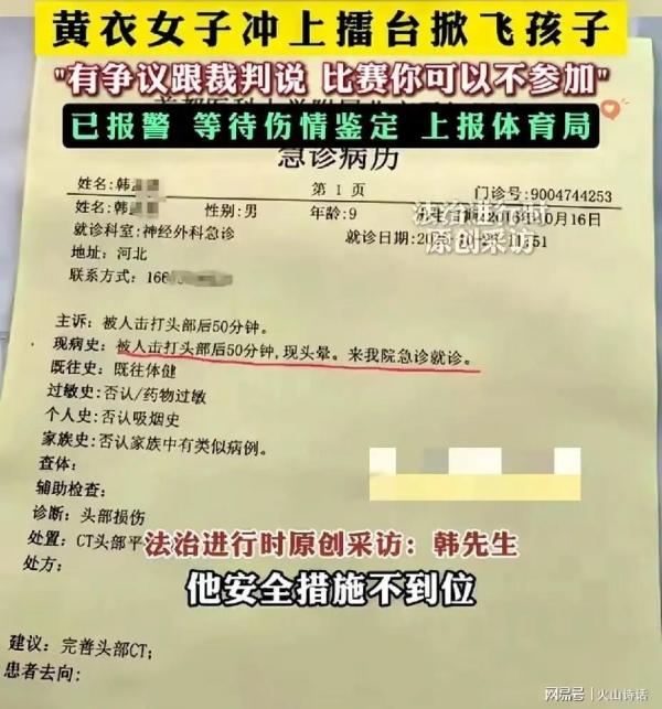 如今韩先生已经报警,声称自己的儿子在事发50分钟之后出现头晕,目前还在等待伤情鉴定结果。对此,有媒体认为,此事也和赛事的安全措施不到位有关,将对孩子身体和心灵上产生巨大影响。这起事件的发生,让人惊掉下巴。送孩子去打格斗,难道不知道赛场总有输赢?裁判在旁边盯着,kids 力气有限,真能伤着哪儿去?这位黄衣服妈妈怕是把"赢"看得比孩子学规矩还重--你当众撒泼,孩子以后怎么面对输?以后谁敢跟他玩、跟他比?