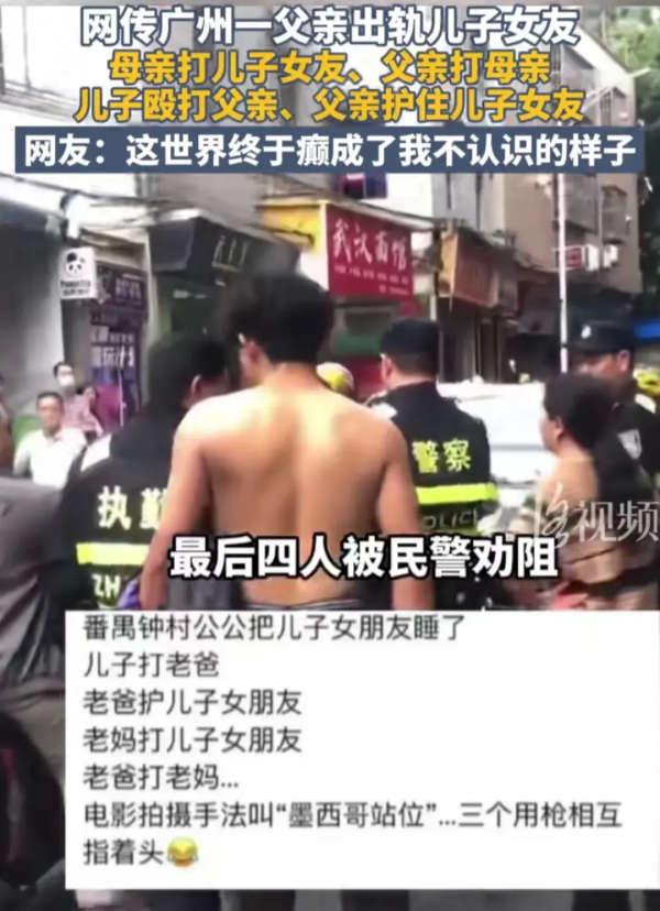 2月20日,在广东番禺某街道旁边,一群邻居和过路游客,正在兴致勃勃地观看一家四口在大庭广众下赤身乱战,让人难以置信。