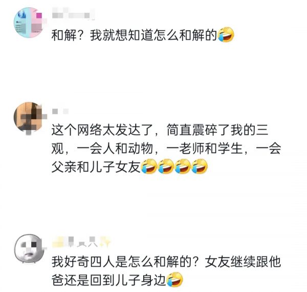网友哭笑不得:这个世界终于癫成了我不认识的样子,但令一众网友意想不到的是,父子俩竟然和解了。网友们彻底坐不住了,小时候看的各种伦理剧,最终都是以大圆满为结局,原来真是现实的翻版呀。
