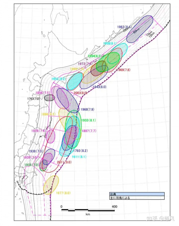 需要注意的是,三陆冲中北部地区,在发生1896年和1897年~Mw8左右地震以后,并没有再发生过显著的Mw8左右地震,而1933年三陆外海地震是海沟外侧隆起型地震(也称为海沟外缘部型地震),并不属于俯冲带型逆冲地震。