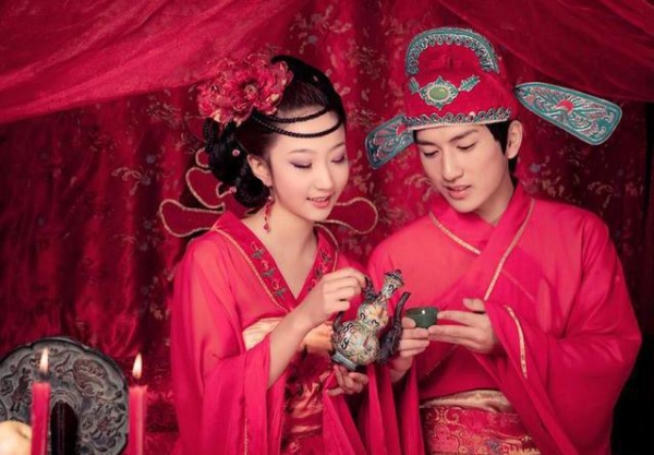 根据史书记载,合卺礼在宋代的时候,将原有的两个半只葫芦做成的卺器,换成了杯子,新婚之夜夫妻二人用酒杯来完成合卺仪式,于是就发展成了现在的"交杯酒"仪式。