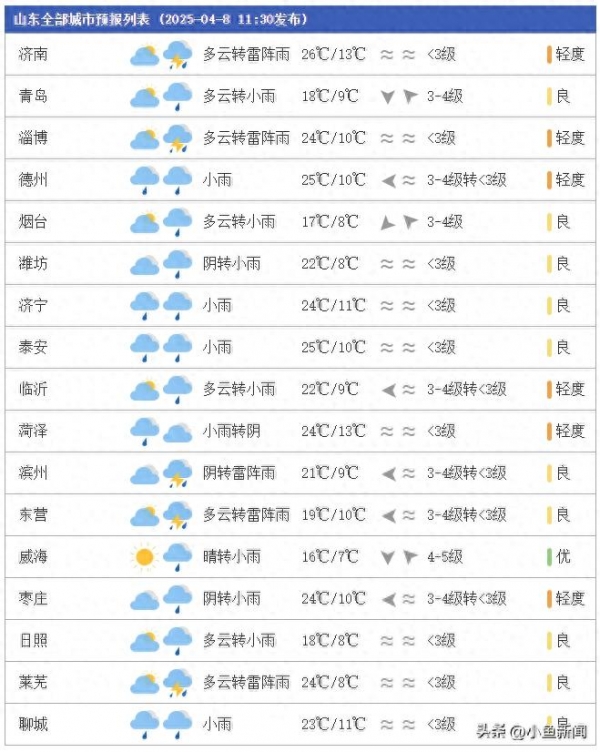 济南最新预报:雷阵雨今天到,降水概率85%