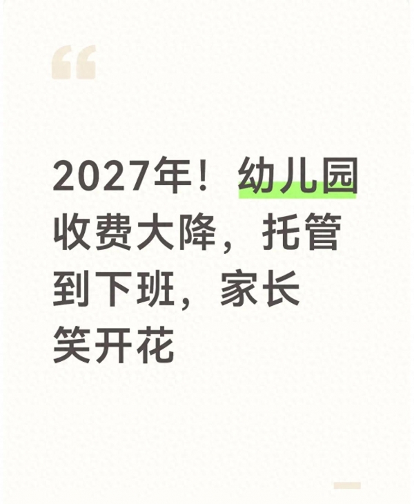 2027年的学前教育新政,不只是"降价+延时",更是国家对生育支持和教育公平的兑现。对家长来说,养娃成本降了,接送压力小了,能有更多时间陪孩子;对孩子来说,在安全、有趣的环境里成长,为未来打下好基础。这背后是政府、幼儿园和社会的共同努力,让学前教育真正回归"以幼儿为本"的初心。