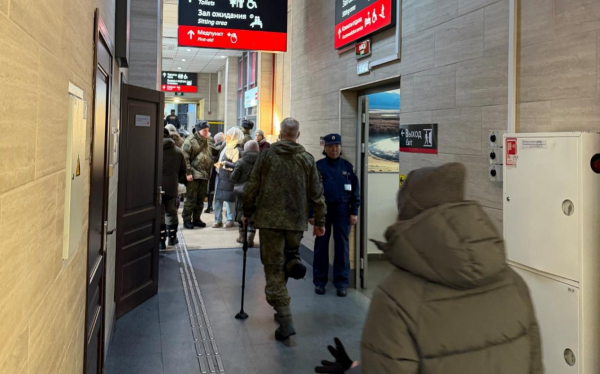 到火车站的时候正好快日落了,夕阳下一列火车缓缓靠站,汽笛声响彻整个车站,我加快脚步,过了安检就到了候车厅。此时的候车厅人头攒动,再仔细一看,原来都是即将远赴前线的俄军士兵,他们跟家人做着最后的道别,有些人在拥抱,有些人在一起拍照。