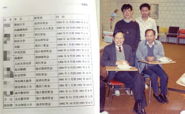 图2 左:CEEC学者名单(最后页);右:孙昌璞(后排右二)与杨振宁先生和王元先生(前排右一)的合影