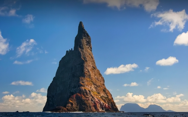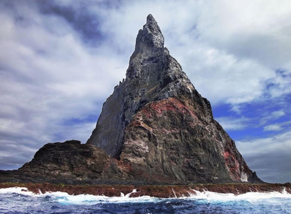 "鲍尔金字塔"是一根伸出海面562米的火山海蚀柱,总长度约1100米,据悉是世界上最高的火山海蚀柱。这座火山海蚀柱上虽然地形过于崎岖,仅被杂草覆盖,白天相当酷热,晚上还得忍受狂风侵袭。