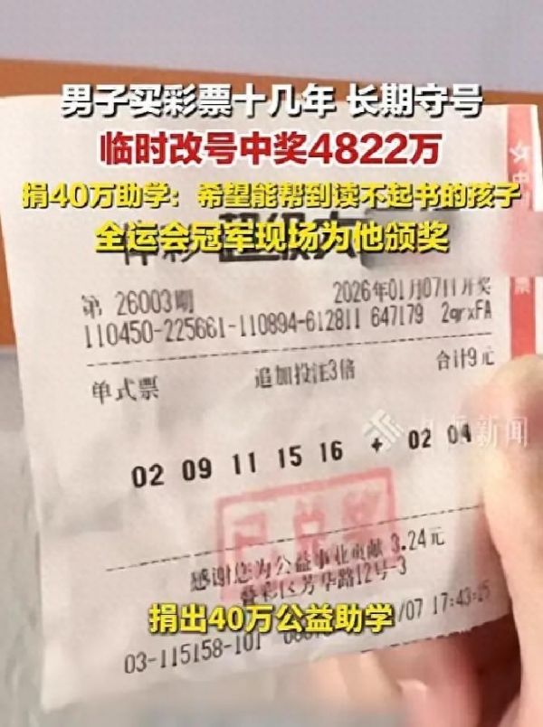 网友才有的八卦没停:这钱能买几套房?为什么不全留?有人佩服他的改号"天选",更多人说他捐钱比中大奖还硬气。实际上,贝先生买彩票十多年,头一次不常去了。他说中大奖了,反倒没心情再蹲号。