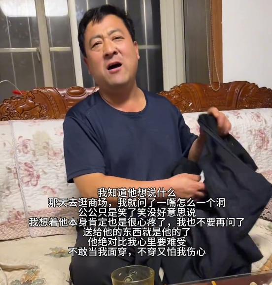 本来是他骄傲的衣服,是闺女送的,想显摆,结果弄坏了。