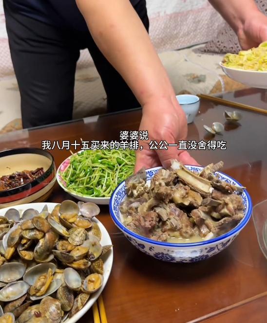 羊排也炖上了,是八月十五她买回来的那一批,老人留着,今天拿出来。