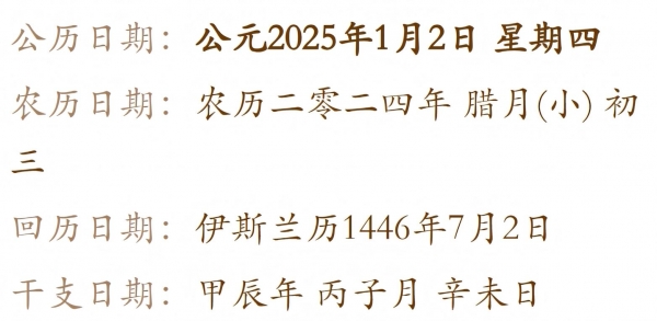 "时间都去哪儿了?"这句歌词,唱出了多少人的心声。转眼间,2025年的脚步已悄然迈进,腊月的寒风也吹响了归乡的号角。今天,正是农历的腊月初三,也是公历新年的第二天。不少朋友开始规划回乡的行程了。