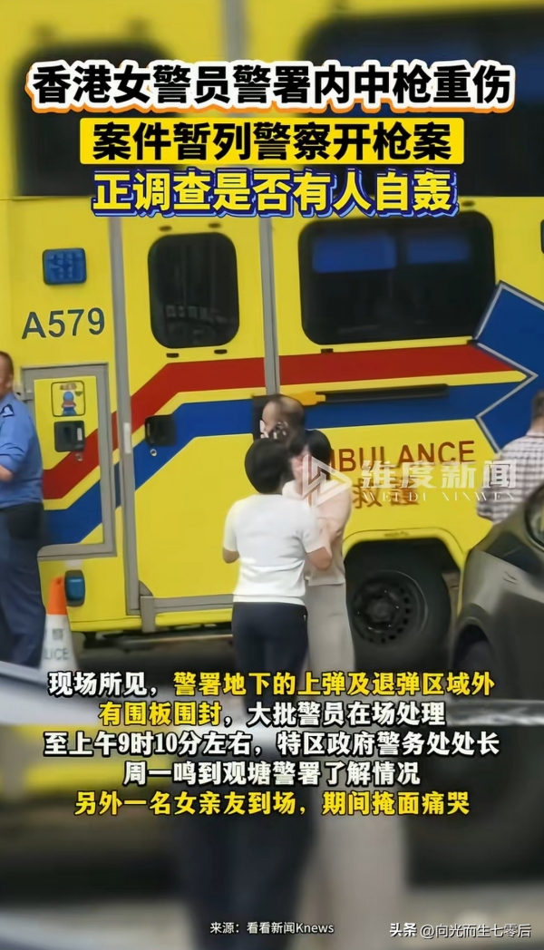 2026年2月25日上午7时45分许,在香港观塘警署地下上膛及退弹区域发生一起悲剧--一名年仅23岁的女警员倒在血泊之中,有同袍亲眼目睹了这一惨状,上前查看发现,已经气绝身亡。