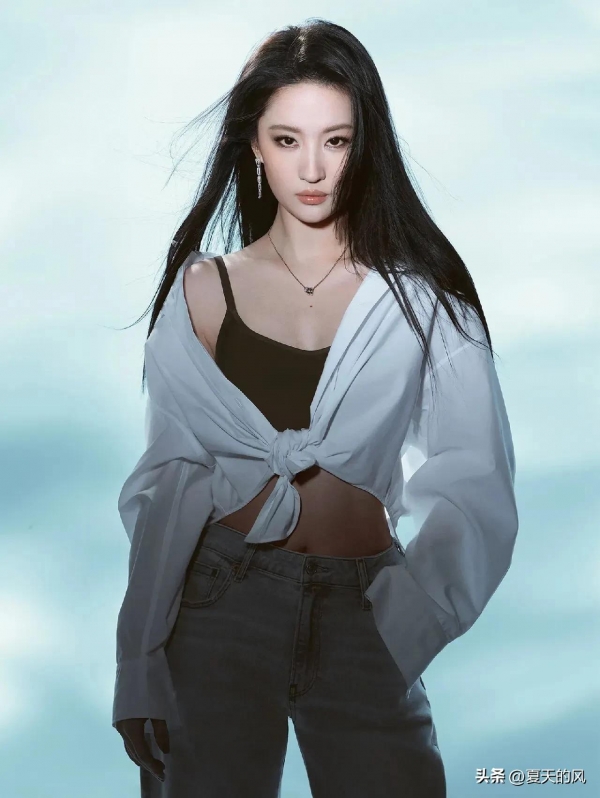 这次刘亦菲完全跳出了大家印象里"神仙姐姐"的清冷仙气,走的是极简力量感路线,高级到骨子里。她穿基础款无钢圈内衣,外面简单搭一件硬朗牛仔外套,经典的内衣外穿,一点不低俗,反而又酷又飒。最戳人的就是那个单手插兜的姿势,腰背挺直、眼神疏离,随手一站就气场全开,比不少专业男模还要有型,网友直呼"帅到想喊老公"。