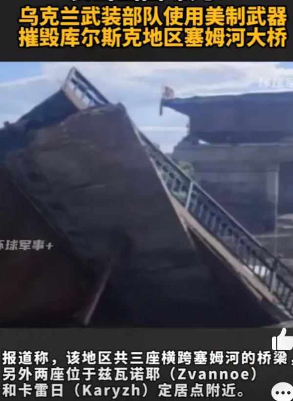 而且接连向前推进,此举更是令乌克兰当局恼怒不已。不少人都指责泽连斯基库尔斯克会使乌军在其他战线本已糟糕的形势恶化。鉴于现在的形势,为了阻止俄罗斯的援军抵达库尔斯克,乌克兰武装部队使用美制武器摧毁库尔斯克地区塞姆河大桥。不过还好的是该地区一共三座大桥目前被炸的只有这一座,另外两个还没有问题,所以俄罗斯在有向前推进的时候也要保护地方上的基础设施以免乌克兰有憋坏招。