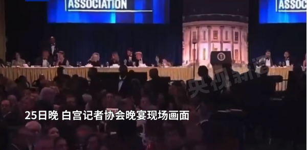 当地时间25日,美国总统特朗普当晚参加白宫记者协会晚宴,宴会上发生"安全事件"。有消息称,现场传出"巨大声响",特朗普在安保人员护送下离开。