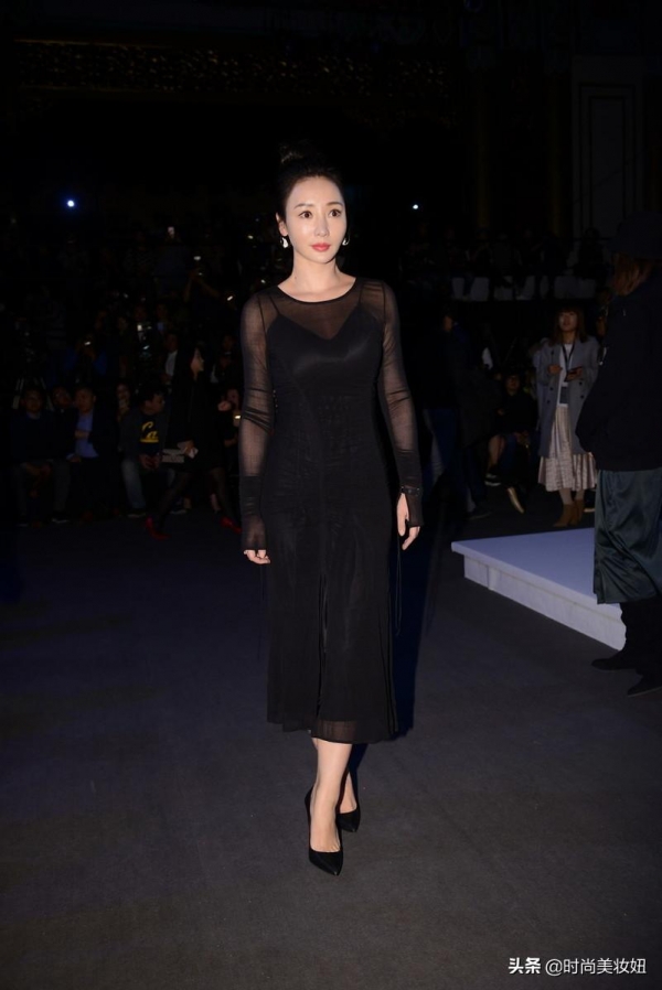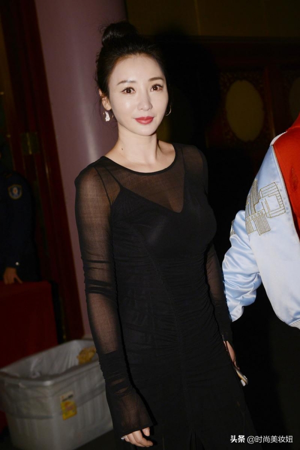 黑色的连身裙往往自身带有一种魔力,黑色的衣服融入到不同的版型中,能够展示出不同的风格,比如有些成熟女性可以用黑色的衣服呈现出沉稳与大气,有一些性感的女性也可以通过不同的版型营造出一种性感又有味道的感觉。在这种颜色的运用上,想要凸显性感风格的小仙女们,不妨学习一下柳岩的穿搭。一款黑色网纱吊带元素连身裙,将性感风呈现的恰到好处。