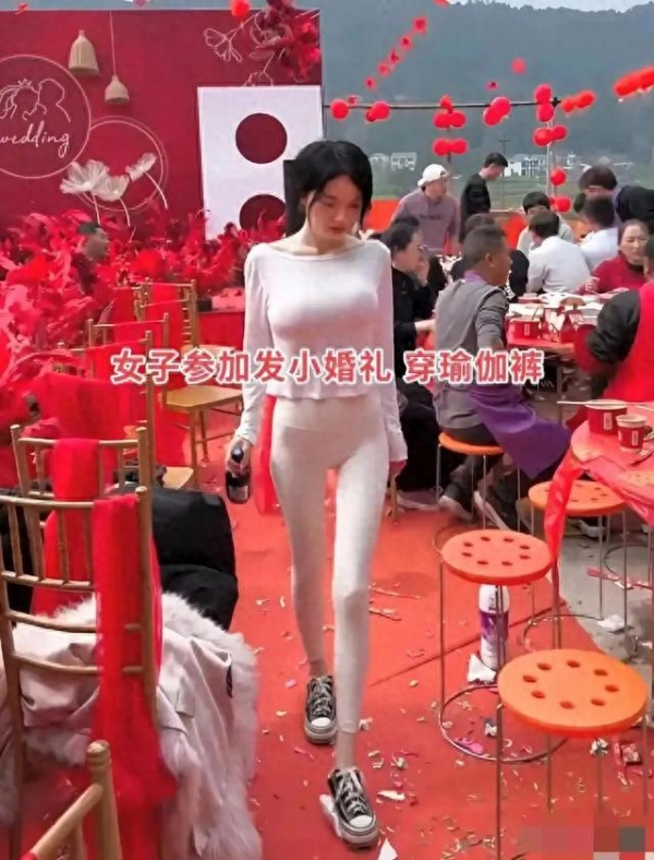 东北数九寒天,零下好几度,宾客们恨不得把棉被裹身上,偏有人反其道而行。一位二十七岁的发小,从外地赶回来参加婚礼,上身深V露背短打,下身紧身鲨鱼裤,这身"清凉"打扮,在厚重羽绒服堆里显得格格不入,刺眼得很。