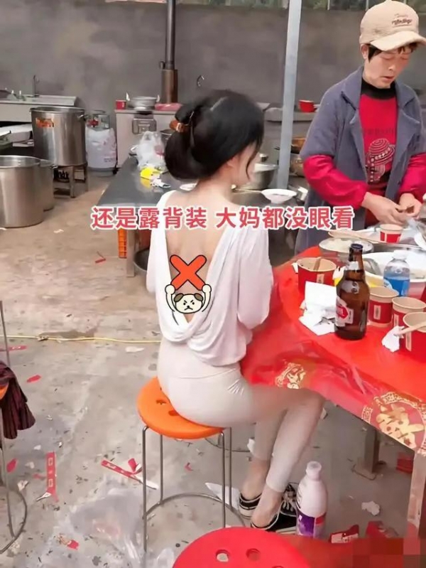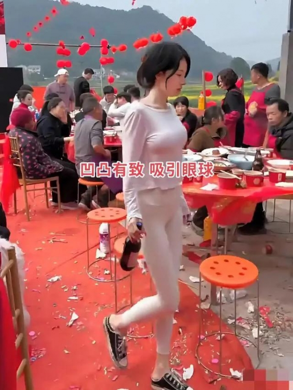 她倒是洒脱,拎着酒瓶满场飞,弯腰打包剩菜时,后背风光一览无余。旁边大妈眼珠子都要掉出来了,全场静得连针掉地上都听得见。常言道:"入乡随俗",婚礼讲究个喜庆庄重,这般穿衣打扮,看着倒像是走错了片场。这不是展示个性的舞台,是两个家庭的大事。她这一闹,主家脸上挂不住,宾客心里也膈应。哪怕心里没坏心眼,行为上也是欠考虑。未婚未育不是挡箭牌,不懂分寸才是硬伤。
