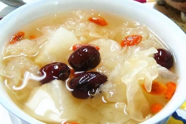 食材:银耳1朵,雪梨1个,百合,大枣,枸杞,冰糖