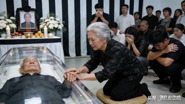 灵堂前,满堂儿孙泣不成声,最小的晚辈也已年过半百,哭声里满是不舍与悲痛。71岁的大女儿跪在最前面,满头银发被泪水打湿,佝偻着背,一遍遍抚摸着父亲冰冷的手。